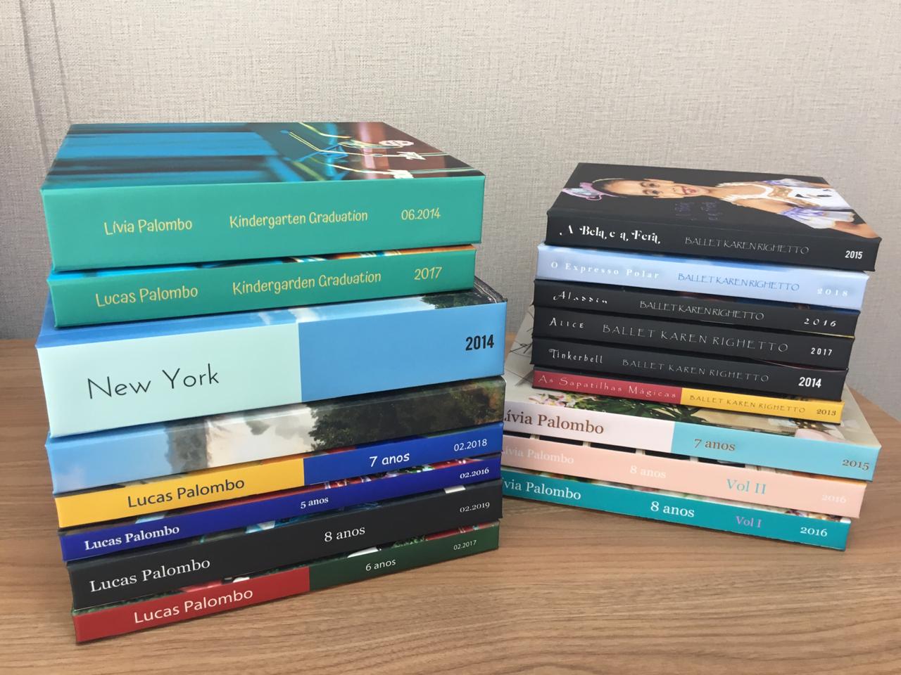 Nossa querida cliente, Flávia, nos escolheu para desenvolver um grande projeto: o sonho de eternizar 22 álbuns, com temas que vão desde aniversários e formaturas, até apresentações de danças e viagens.